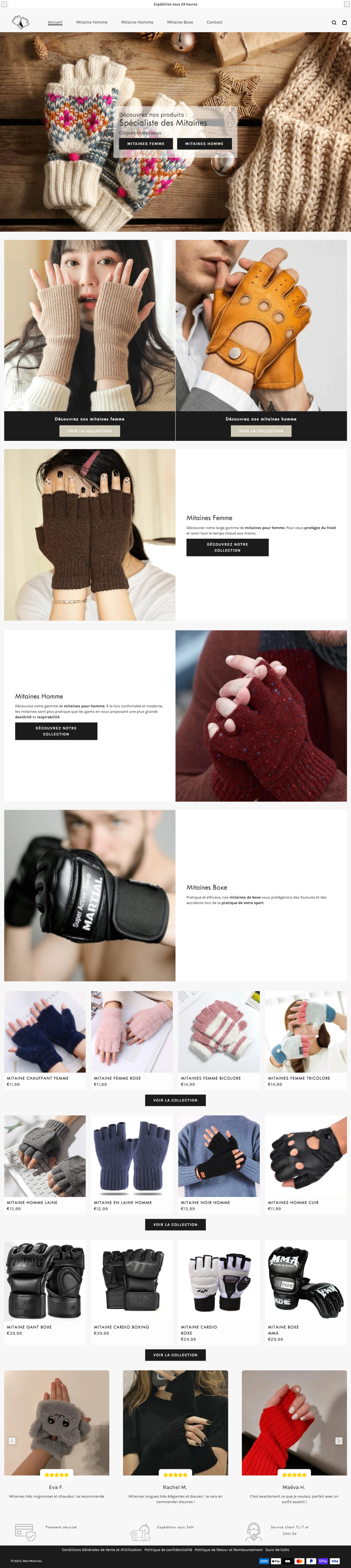 Mes Mitaines est une boutique en ligne vous proposant des modèles de mitaines pour les femmes et pour les hommes. Nos produits sont de grande qualité et vous permettront de garder vos mains au chaud lors de la saison hivernale quand les températures sont basses.Nos mitaines sont élégantes et confortables à porter, de plus elles sont composées de tissu de grande qualité afin de leur garantir une longue durée de vie dans le temps.Notre livraison est rapide et sécurisée. Vous avez le choix entre de multiples designs et coloris afin que nos produits plaisent à tout le monde.